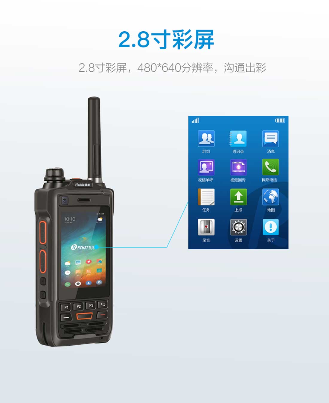 RP7508全能高防智能終端,帶4G全網(wǎng)通、WIFI、專業(yè)DMR數(shù)字對講與模擬對講于一身,支持DMR、模擬錄音,具備網(wǎng)關(guān)功能。配備專業(yè)雙PTT按鍵,通過專業(yè)音頻設(shè)計達到媲美專業(yè)對講機的音效;2.8吋大屏有效擴展行業(yè)用戶對圖像、視頻、數(shù)據(jù)業(yè)務(wù)應(yīng)用的需求;IP67高防護性、電池超長續(xù)航、GPS/北斗精確定位,同時可支持外接高清紅外攝像頭等設(shè)備,是融合通訊應(yīng)用不可多得的全能高防智能終端產(chǎn)品