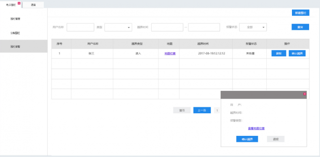 調(diào)度員為用戶設(shè)定圍欄,并設(shè)置進(jìn)入或者越界報警